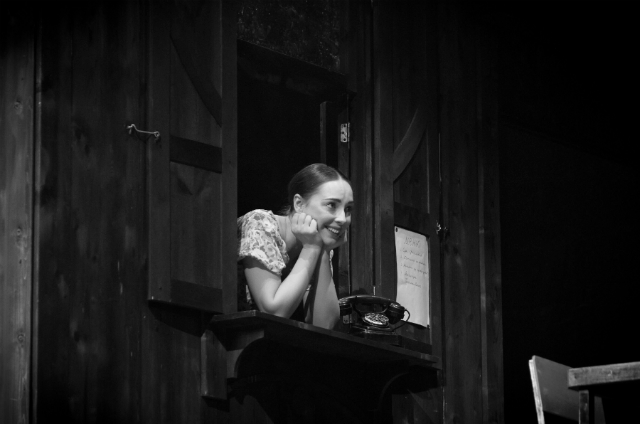 Высоченный, аж до колосников, черный тяжелый дом всем своим видом транслирует беду. Нависает вороном над единственным живым, мягко освещенным Евгением Ганзбургом окошком в «Чайную», на полках которой просматриваются сгущенка, банки с растворимым кофе (made in India), еще какие-то вещицы жизни теплой, домашней.