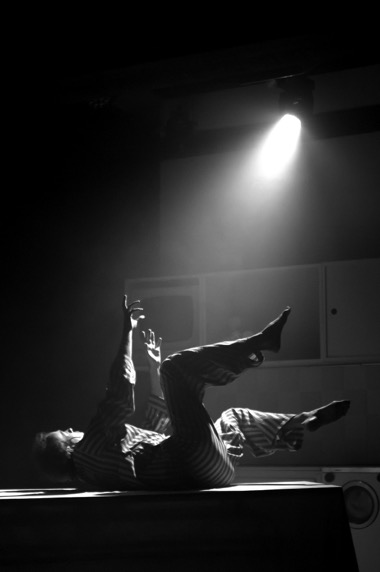 Как рассказывать о вой-не? «Это будет похоже на сон», — говорит Билли Пи-лигрим, главный герой «Бойни № 5» Курта Вонне-гута. На очень путаный сон, в котором сознание перескакивает от одного собы-тия к другому, будто не же-лая вспоминать все, что было, целиком. Потому что больно. Или потому что давно. Да еще и инопланетяне появляются в этой истории на своем летающем блюдце. Как будто и без них проблем мало… Как ставить спектакль по роману, в котором так рассказано о войне? Казалось бы, это невозможно. Текст абсолютно нетеатральный. Но каким-то чудом режиссеру Артему Устинову и команде удается сохранить атмосферу первоисточника, передать со сцены найденное и зафиксированное Воннегутом ощущение горячечного бреда неясного ума — и при этом не дать спектаклю развалиться на атомы. Сцены с лязгом врезаются одна в другую, «воспоминания» Билли Пилигрима наслаиваются и лезут буквально из всех щелей: из холодильника, духовки, посудомойки… Как анализировать спектакль, так поставленный по роману, который так рассказывает о войне? Глядя в оба и не жалея блокнота для заметок.