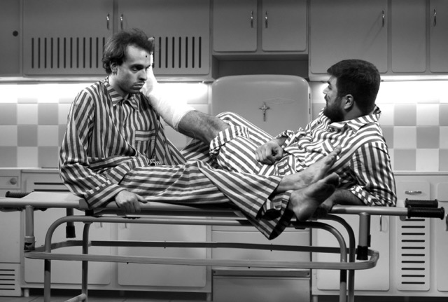 В памяти Билли всплывают и другие персонажи: бодрый Англичанин с великолепной выправкой и прикованным к лодыжке железным ядром (Кирилл Пчелинцев), набожная Мать в зеленом парике и с кислородным баллоном на тележке (Анна Силина), глупая жена Валенсия, намазанная зеленым кремом и для утолщения обвязанная с двух сторон подушками (Марина Демьяненко)… То, что всех героев играют только пять актеров, не просто необходимость для маленькой труппы Никитинского театра, это работает и на эффект потока не очень ясного сознания. Лица и события мелькают и смазываются, будто Билли крутится на карусели.