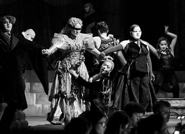 Вот казалось бы — в этой постановке безусловно есть самостоятельный взгляд режиссера на доверенный ему материал. Что же рецензенту не нравится? Кроме предположения, что русский дворянин может служить палачом и быть при этом дельным человеком? Ну вообще-то полное несоответствие Чайковскому. Не Пушкину — тут претензии не принимаются, опера его еще как переделывала. А именно Чайковскому. Который написал (и Синьковский в яме, между прочим, точно воспроизвел) не дурной триллер, а «лирические сцены». Что ж, в каждом нескучном театре должен быть свой анекдот в репертуаре — а то публике и посмеяться не над чем. Вот сидит она, серьезная, и слушает, допустим, «Похищение из сераля» — а там режиссер Екатерина Одегова убежденно превращает турецкий гарем (сераль — он и есть) в райский сад, Хозяин-паша на сцене не появляется, его голос доносится откуда-то с заоблачных высот. Художница Этель Иошпа затягивает сцену зеленой растительностью, художник по свету Стас Свистунович наводит томные блики — и, в общем, как-то непонятно, почему девица и ее горничная, попавшие в это блаженное место, стремятся отсюда удрать. (У Моцарта-то особых иллюзий по поводу того, что такое гарем, не было.) И вот сидит народ в зале и размышляет о том, чего стоит и чего не стоит свобода, — а это не очень весело. Радует — опять — оркестр, божественно собран ансамбль певцов, ну а режиссура… Эх. Если же в театре прицельно решаются поставить комедию — оперу-балет Моисея Вайнберга «Любовь д’Артаньяна» — то поручают это Игорю Ушакову, который отправляет действие в советский дом культуры, где комсомольцы притворяются мушкетерами, — и уже от воспоминаний о реальности таких ДК становится невесело. При этом выпуск премьеры был поручен Ивану Великанову — и дирижерская работа опять спасала рутинные конструкции режиссера.