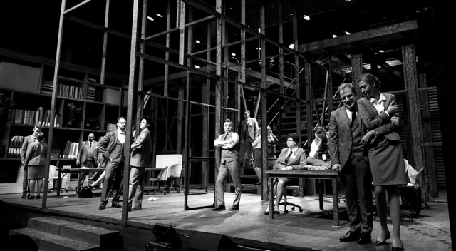 Эту премьеру, выпущенную в сотрудничестве с фестивалем Дианы Вишневой Context, показали в Пакгаузах — новой, второй сцене театра, что расположена на стрелке Оки и Волги. Гораздо меньший по объему, но значительно более удобный зал, чем главное здание оперного (что строилось сто с лишним лет назад как народный дом и располагает длиннющим и плоским партером, где уже с десятого ряда ничего не видно), сейчас стал модным местом Нижнего. Вот и премьера «Горького» напоминала молодежную тусовку — театр начал получать публику, прежде в него не заглядывавшую. Эта публика с энтузиазмом откликалась на реплики актеров, в первые секунды спектакля разбредшихся по залу, честно пыталась разобраться в происходящем на сцене и реагировала с живым вниманием.