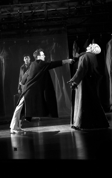 Перед артистами МДТ встала (и решена, для каждого по-своему) новая для них задача: сыграть людей-наваждения с психологической подлинностью. Ярославу Дяченко в роли Хлудова, конечно, помогает пластическая (можно сказать, вещественная) конструкция его персонажа, но она наполнена внутри необыкновенной интеллектуальной резкостью в предельной ситуации существования, горечью в масштабе постоянного колебания между пространствами жизни и смерти. Это кукла и кукловод в одном лице, он живой и в то же время мертвец. Артист решает сложнейшую задачу естественного взаимодействия «фантома», страшного олицетворения войны с «живыми» людьми.