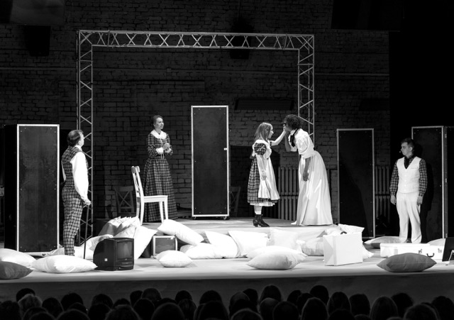 Очень ценно в работе театра еще то, что есть спектакли для многих и они идут на большой сцене, а есть — для меньшинства. Это может быть интеллектуальное меньшинство — где вы видели сейчас в театре трагедию Цветаевой, да еще одну из самых сложных? Это могут быть те, кто идет в театр, чтобы преодолеть какие-то свои страхи, травмы, комплексы. Во всяком случае, Артем Терехин, поставивший пьесу Марии Огневой «За белым кроликом», предполагал некоторый терапевтический эффект. Я видела его эскиз по этой пьесе пару лет назад на лаборатории в «СамАрте». Уже тогда был намечен рисунок, был определен стиль. А идея, видимо, не давала покоя. И режиссер реализовал ее в Березниках. Спектакль прекрасно описан в статье М. Каменских в блоге «ПТЖ» («Мам, это просто случайность», 25 января 2024 года). Повторяться не буду.