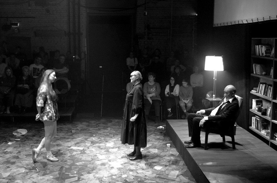 После последней лаборатории появился спектакль Дмитрия Лимбоса «Житие» по пьесе Ярославы Пулинович с длинным названием «Житие Федора Михайловича и Алевтины Павловны, или Жаркое ковидное лето». Не знаю, то ли жизнь очень сильно изменилась после того ковидного лета, то ли в сознании драматурга воспоминание о нем оказалось из разряда «как хорошо мы плохо жили». Но сам текст мне показался чрезвычайно искусственным. Ни в тексте, ни в спектакле так и непонятно, почему «житие»? Все же слово это имеет совершенно особый смысл. В пьесе три поколения женщин, слава богу, не «под одной крышей». Все, как водится, не понимают друг друга.