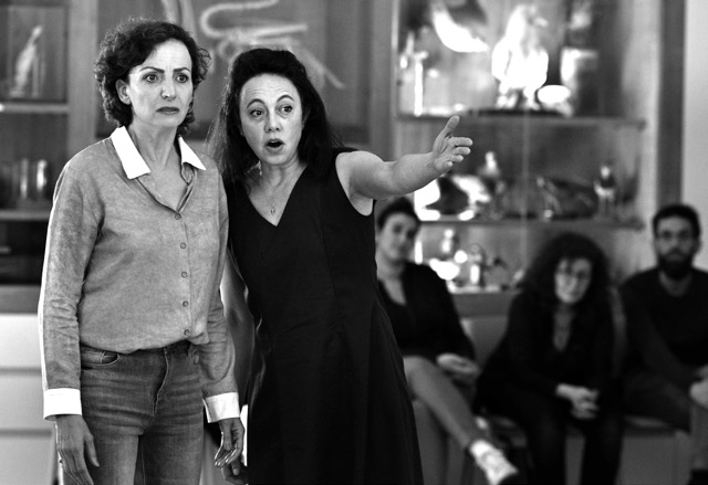 В спектакле заняты более чем востребованные актеры израильского репертуарного театра. Собрать их вместе для осуществления независимой постановки нелегко. Но это актеры, которые уже много лет работают с Авнери. С ними он делал «Марию Стюарт» Шиллера, «Чайку» Чехова и «Кровавую свадьбу» Лорки. Вероятно, для них притягателен его репетиционный метод, целиком построенный на анализе, заостряющем смыслы и при этом создающем ситуации свободы для актера. Вместо режиссерских показов Авнери предлагает аналитические манки и с их помощью ведет актеров к созданию образов.