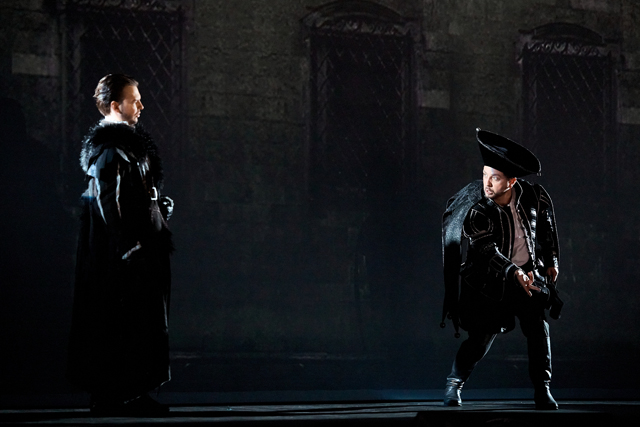 Сергей Новиков (по образованию — саксофонист и журналист, по должности — начальник Управления Администрации президента РФ по общественным проектам, по душевной склонности — режиссер) уже появлялся в качестве постановщика в Нижнем Новгороде — пару лет назад он выпустил «Онегина», сократив в названии оперы Чайковского имя персонажа и подарив ему карьеру в государевой особой службе, где он должен был расстрелять Ленского, нечаянно оскорбившего портрет императора. От «Риголетто» ждали таких же радикальных решений — но, как ни странно, получился совершенно конвенциональный спектакль. Художница Мария Высотская выдала всем персонажам «исторические» костюмы, художник по свету Руслан Майоров покрыл сцену внушительным полумраком (ну, все злые дела совершаются в темноте, не так ли?), а сам режиссер подробно и старательно изложил ход событий.