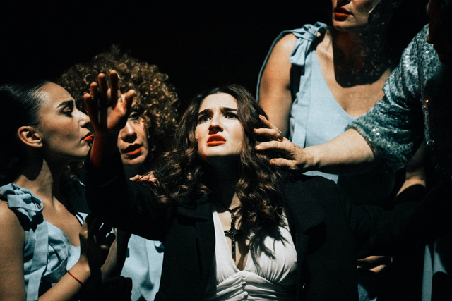 Это особенно заметно в рисунке главной роли. Работа Лоиды Тыркбы производит сильное впечатление именно своей предельностью. Ее Пиаф беззащитна, почти по-детски ранима. В этом образе нет величия легенды — только человек, который устал, но продолжает выходить на сцену, потому что иначе нельзя. Вместе с тем героиня довольно рано и почти полностью совпадает с ролью жертвы, и это совпадение быстро перестает быть напряжением. В спектакле редко возникает ощущение сопротивления — даже обреченного, даже ошибочного: страдание показано точно, но выбор остается за кадром. Даже ошибочное, обреченное сопротивление могло бы вернуть этому страданию внутреннюю динамику, но спектакль сознательно отказывается от такого риска.
