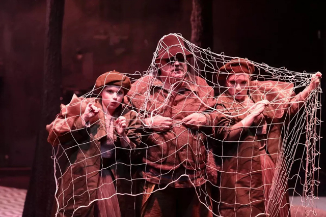 Спектакль чудесно сыгран: актерские работы — ряд прекрасных наблюдений за детством, вспоминание его, и невозможно не узнать в героях маленького себя, своих друзей. Актеры не изображают животных, на их принадлежность к миру леса указывают детали костюмов: у Ежика — шапочка, мех которой похож на мягкие пушистые иголочки, у Медвежонка — рукавички, у Зайца — белый шарф, длинные концы которого в его лапах превращаются в шерстяные уши, у Белочки — пышная юбочка, напоминающая пушистый хвост, и завитушки-кисточки красно-рыжих волос. Наталья Кучишкина создает сложносочиненный, многосоставный образ Ежика: он ребенок и взрослый, бунтарь и тихоня, храбрец и трусишка, непоседливый шалун и сосредоточенный мыслитель.