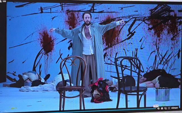 Это сходство содержательных мотивов, имеющих отношение к сегодняшней рефлексии русского интеллигента-неврастеника, для меня дороже и новее всего другого в новом «Дяде Ване», посмотренном в трансляции 1.04.26 в пространстве города Петербурга…