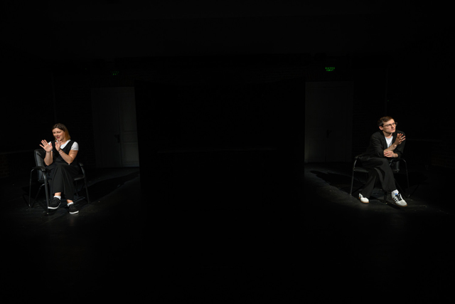 Разумеется, без выяснения отношений их диалог не обойдется. И, разумеется, их личная история возьмет в спектакле безусловный верх над историей фантазийной (хотя за изгибами творческой мысли двух художников наблюдать очень и очень любопытно, к тому же их фантазии естественным образом будут так или иначе рифмоваться с их же «подлинной» историей). То и дело она будет укалывать его за то, что он молча бросил ее и сбежал в эмиграцию, обрубив все средства связи и оставив ее в отчаянии и жестоком молчании, без единого ответа. То и дело он будет пытаться неловко оправдаться, что сделал это во имя высоких идеалов верности себе, чтобы вырваться из стагнации, в погоне за мечтой о другой жизни. И неизменно эти попытки будут выглядеть слабыми и жалкими даже в его собственных глазах, потому что на фоне простой человеческой правды чувств — той самой «экстатической», на фоне элементарного «бросить близкого человека подло» никакие философские идеи и смыслы не работают, сколь грамотно их ни преподноси. Любые его отговорки сникают перед ее острым вопрошающим взглядом, направленным сквозь километры ему прямо в душу.