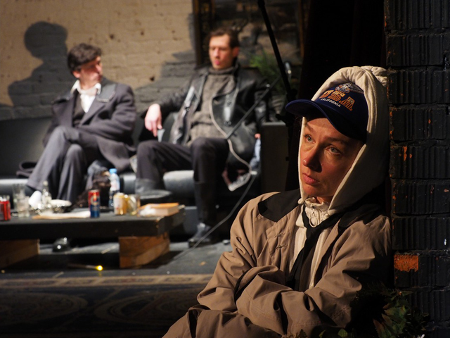 Заданная с первых минут тема смерти, конца жизни, финала всяких усилий — устойчивый лейтмотив спектакля, разрастающийся ко второму акту до навязчивого рефрена. Евангельский путь преодоления смерти декларирует Священник в исполнении Игоря Михалева. Режиссеру важны и параллели с «Братьями Карамазовыми», темы воскресения и человеческого предназначения.