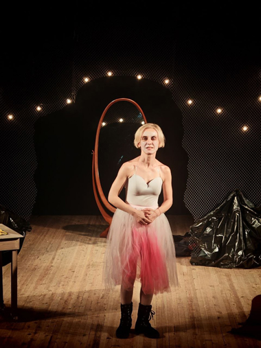 Но главное происходит во второй части спектакля. Актриса снимает с себя осточертевшую строгую одежду и оказывается простоволосой, босой милой женщиной, которая рассказывает о себе. О том, какая она, что любит поесть и чего не любит делать. Начинается автофикшн самой актрисы. В монолог включены моменты ее биографии, ее привычки и ее проблемы. Актриса обаятельна, свободна, иронична. И так хочется узнать ее ближе! Но спектакль заканчивается. И кажется, что две его части не равны друг другу по художественному уровню. Хотя сама идея очень важна и более чем актуальна. Кем навязано женщине это стремление к успешности? Где граница равновесия? И спектакль эти важные вопросы ставит.