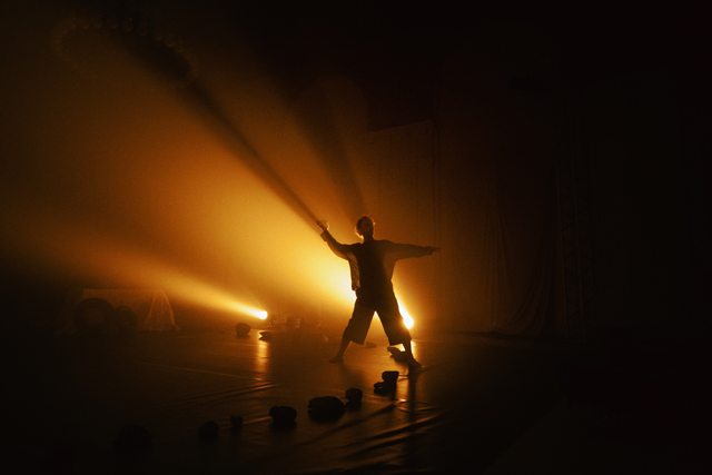 Начинается все привычно: мы понюхали воздух в залах бывшего банка, пахнущий неизменными благовониями, и собрались на лестнице, чтобы увидеть перформанс до перформанса, увертюру, пролог — называйте как хотите. На каждой ступеньке — камни разного размера. Зрители располагаются на балконе второго этажа и наблюдают, как пять танцовщиков стелятся по ступеням, опасно взбираются на перила, балансируют и перелезают через них, просачиваются между зрителями. Во многом это напоминает действа, которые устраивал со своим оркестром Курентзис в старом помещении Пермской художественной галереи (до лета 2025 года она находилась в не работавшем по назначению Спасо-Преображенском кафедральном соборе). Экспозиция с редкими деревянными фигурами «пермских богов», которую предпочитал превращать в концертный зал маэстро, располагалась на втором этаже сразу за лестницей; зрители должны были гуськом подниматься в полной тишине, что создавало ощущение торжественной процессии.