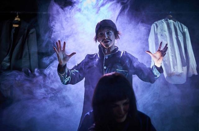 Мамлин — Минлян существует в психологическом рисунке. А кому-то приходится менять маски моментально. И не всегда возникает партнерство. Например, Наталья Романова играет десять эпизодических ролей. Где-то она находит точный пластический рисунок — например, ее лодочник запоминается за секунды. Где-то она пробует создать маску интонационно: например, когда играет любимую бабушку Минляна, которая осталась единственным нежным воспоминанием его детства. Или когда в обнимку с куклой-маппет играет сестру Минляна — в одном эпизоде Наталье Романовой удается создать образ унылой, скучной женщины. А где-то актриса просто не успевает поменять ни маску, ни голос.