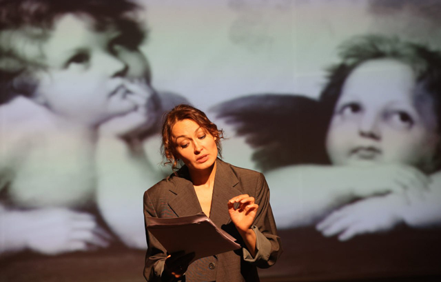 Арина Лыкова на протяжении всего действия выступает в роли Исполнительницы текста, но в этой маске одновременно отображаются и декадентка рубежа веков, и муза поэтов, и влюбленная, и автор с ироническим прищуром, и двоящаяся современница — тех и этих 20-х. Которой одновременно близок и весь прекрасный Серебряный век, и приговская «Азбука». Здесь интересно: эпизод с чтением под бит «Азбуки № 37, похоронной» (в которой «вымерли Гете, Гейне, Гендель, Гедель, Гогенцоллер, Гогенлоэ, Гофман, Гоголь, Гегель <…> Вымерли все ласковые, лелейные, любимые, любовные, лиловые, летучие, легковейные» — в общем, на каждую букву что-то исчезло) — неожиданный момент яростного напряжения, новая тональность. «Песня» Арины Лыковой звучит множеством переливов и чувств: нежность и трепет, горечь и боль, восторженность и отрешенность, все — только в ее голосе, легких и острых движениях, в пространстве ее комнаты и культурной памяти.