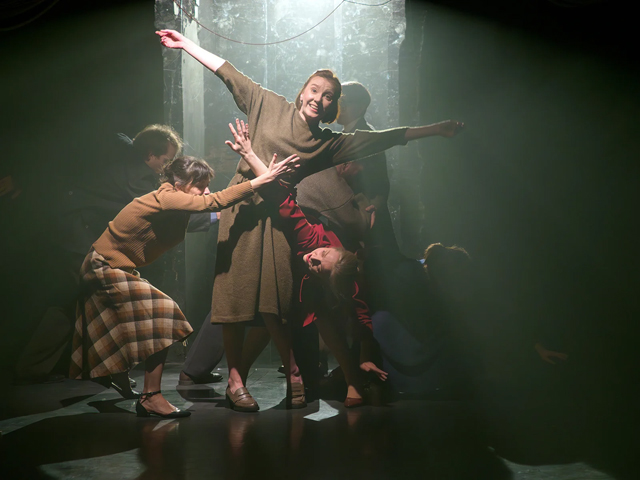 Мягкий окутывающий свет (художник по свету Юрий Курамшин), тени на черной стене, кружева платков, линии половиков, соединяясь, рисуют причудливый узор. Он продолжается в придуманных для финального танца-обряда нарядах и масках: будто элементы народного костюма разомкнули и пересобрали заново. В этом хтоническом хоре сходятся все звуки и голоса — пространство не вмещает объема музыки, ее густота взрывается сверхновыми внутри тебя, обнаруживая отголоски другого мотива. Елена со всей своей сверхмощью всегда была растворена в нас — готовы ли мы ее услышать?