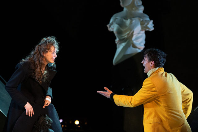 Пытается донести и цитирует три слова из Пушкина — немножко Онегин? Или пара нот — из Генделя. Но в этом скромном минимуме гуманитарного образования, как и в пиджаке с чужого плеча, крохе очень скоро оказывается неловко. Неуверенным мечтателевским тенорком: «Lascia ch’io pianga», — обрывается. «Я к вам пишу», — запинается. Непонимание: а как очутилось в устах Мечтателя? И от смущения быстро исправляется на «я пишу к вам». Он — не Онегин, она — не Татьяна. Чувствует и со-чувствует режиссер: Мечтатель и Настенька.