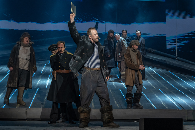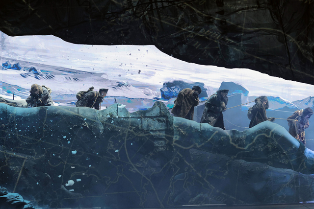 Весь второй акт длится и длится изматывающий переход через полярный ад. Дунаевский не просто так определяет свою работу как «оперу для драматического театра»: так проще отсечь развлекательные коннотации, присущие слову «мюзикл». Участники группы Альбанова гибнут один за другим — каждый под собственную красочную галлюцинацию. Казалось бы, они должны объединиться, чтобы не стать добычей стихии, но люди остаются людьми: на их пути находится место и предательству, и прощению, и искуплению.