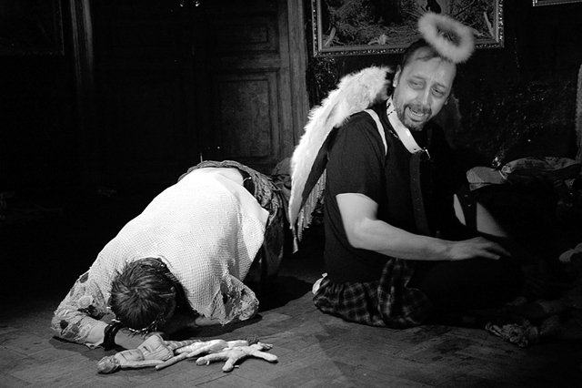 О. Ягодин (Гамлет), Н. Коляда (Призрак отца Гамлета). «Гамлет». Коляда-театр.