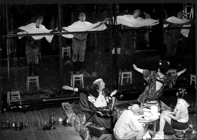 «В сон мне — желтые огни, и хриплю во сне я…» — вот могло бы быть кратчайшее описание его спектакля. Который фиксирует вечно «плывущую» неустойчивую реальность.