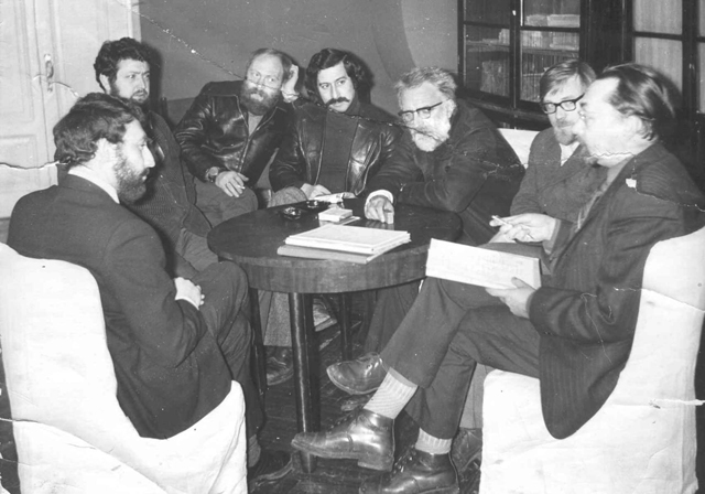 Во главе стола — Виталий Николаевич Дмитриевский. Справа от него, на диванчике: Олег Борисович Божков, Андрей Николаевич Алексеев, Виталий Леонидович Владимиров, Борис Николаевич Кудрявцев, напротив Дмитриевского — Леонид Евсеевич Кесельман, на кресле рядом с Дмитриевским — Борис Зусманович Докторов.