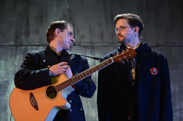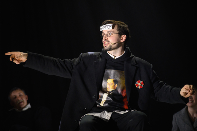 Появляющийся далее на сцене сам Грибоедов (Роман Колбин) — в современной одежде, с модной стрижкой; на его худи напечатан портрет Грибоедова. На протяжении всего действа талантливый поэт, умный человек мучительно будет искать себе место в российской реальности.
