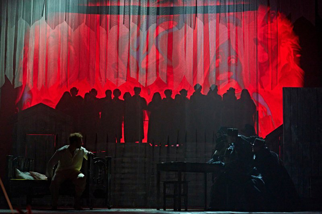 Пластическая жестуальность толпы, то действующей синхронно, то рассыпающейся мозаикой персонализированных сценок, впечатляет: балетмейстер Сергей Смирнов работает с массовкой на сцене — танцовщиками, хористами — детально. Слаженный хор звучит непривычно открыто, даже резковато, в актуально-этнической манере на грани пения-говора (хормейстер Светлана Асуева, ассистент дирижера по работе с вокальными ансамблями Анна Емельянова).