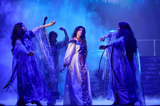 Исполнители лихо справляются с кросс-культурным разбросом этники: здесь и суровые ритуальные напевы-вытаптывания, и забористая частушка, и плетущийся множеством подголосков женский колыбельный напев, и гипнотические заговоры; и вдруг еще (сцена игры в карты) — клезмерская «умца-умца» пополам с цыганщиной. Заряжают зал и терпкие ритмы/лады балканского музыкального микса. Брожению сил и инстинктов общины-громады взрослых противопоставлена невинность мира детей, весело играющих в горелки: юные артисты работающей при театре Детской студии им. Вл. Разноглядова вносят ноту теплоты. В надежных и чутких руках Эхтибара Ахмедова и музыкантов его оркестра вся эта полижанровая, полистилевая, полная контрастов (от музыкального импрессионизма до кластерно-хоровых звучаний) махина оживает и подчиняется тяге неуклонного симфонического развития.