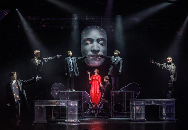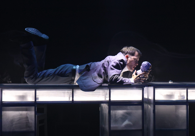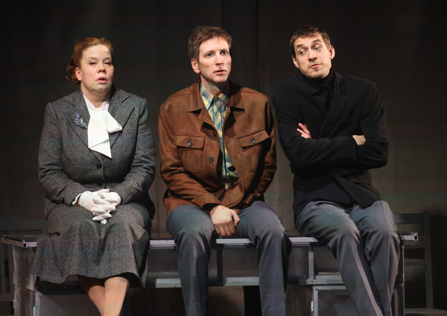 Видимо, сам театр это понимал. И пытался найти выход. Прозрачные тюли художника Марии Гросс, сквозь которые просвечивает прошлое (несвежий сценографический прием с длинной бородой), выходом точно не стали, как не стали им и прозрачные письменные столы, превращающиеся иногда в разводящиеся мосты (красиво, но что дальше?). Времена не просвечивают друг в друге.