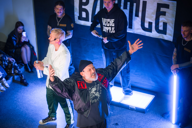 Настасья Федорова написала отличный рэповский текст. На роли героев были выбраны отличные актеры — Александр Лушин (Грозный) и Иван Капорин (Курбский). Но, во-первых, за шумом и гамом баттлов фактически пропадала политическая основа двух концепций развития Руси — западнической и скрепно-тиранической. А во-вторых, по какой-то неясной причине, практически ровесники (два года разницы не считаются), герои оказались разведены возрастно. Юный Капорин был Курбский — этакий элегантный желторотый релокант «весь в белом». А опытный Лушин — возрастной Грозный, одетый как с любого нынешнего базара. Было и еще одно «но». Опытный Лушин буквально энергетически «валил» молодого Капорина — и выходило, что Грозный-то побеждает, чего не хотелось бы принять как данность в сегодняшнем времени.