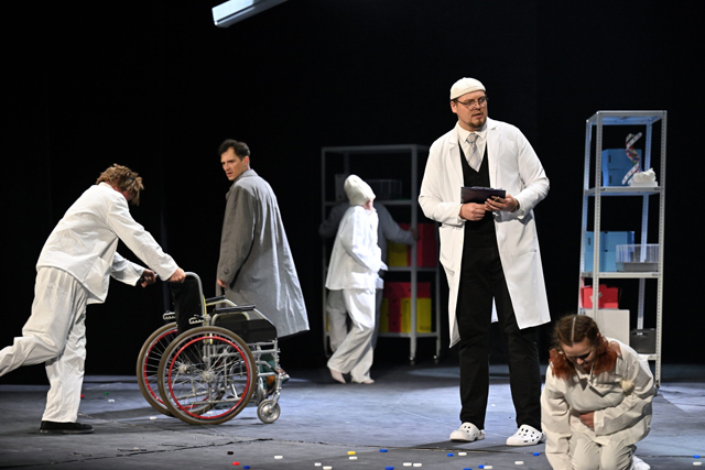 За время спектакля герой проживает полноценную жизнь, где каждое событие — ключ к следующему шагу в его развитии. Тем не менее, зыбкость режиссуры не позволяет создать в спектакле пространство какой-то основной идеи. Егор Равинский использует крючки, за которые в дальнейшем сам не цепляется. Например, доктора в исполнении Дмитрия Бойко, Евгения Ивковича и Сергея Марговича тут не циничные ученые, видящие в человеке лишь «подопытную мышь», однако они и не полностью положительные персонажи, искренне переживающие за Гордона. В какой-то момент все сцены, где они присутствуют, наполняются недосказанностью, словно намекая — врачи что-то скрывают; и не просто так Алиса Киниан плачет, обнимая Чарли, она словно испытывает вину за свой вклад в эксперимент. В дальнейшем эти намеки так и не раскроются, не будут согласованы с событиями спектакля, его темами: когда становится ясно, что гениальный Чарли может регрессировать до состояния овоща, ученые выражают искреннее непонимание, удивление, а затем разочарование и злобу из-за изменений молодого человека, превративших его в «эгоистичного высокомерного сукина сына».