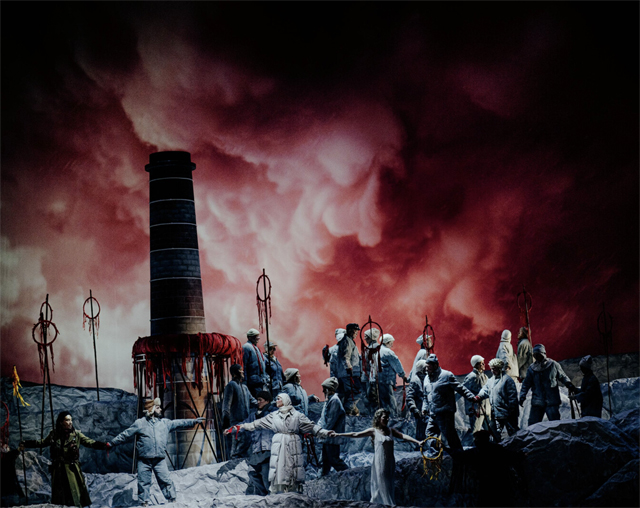 Как и в Бонне, режиссер, пристрастный к ярким визуальным образам, взял в соавторы художника Галю Солодовникову и видеохудожника Олега Михайлова. И то, что придумано этими тремя полноценными соавторами, заставляет зрителя несколько ослабить внимание к собственно музыкальной части постановки, несмотря на блестящую работу дирижера и оркестра.