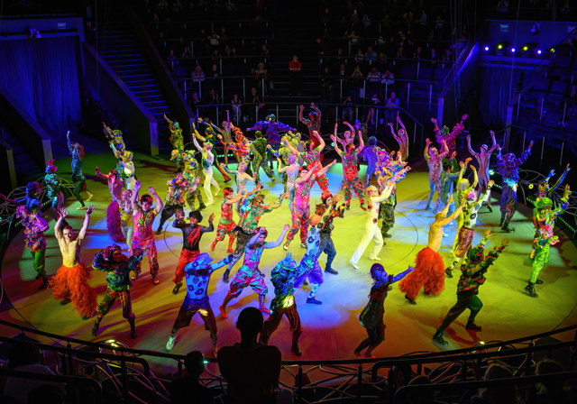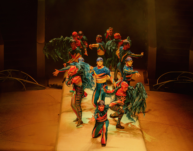 Художник Екатерина Злая придумала костюмы под стать идее — пластичные гимнасты и гуттаперчевые акробаты оказываются обладателями струящихся, переливающихся тел, которым доступны любые самые замысловатые трансформации и парения. Цвет и фактура костюмов кордебалета напоминают слоистый серый пепел в начале спектакля — диковинные существа вылезают прямиком из большого сундука/бака у края манежа — и превращаются в буйство слоистых цветов в финале. В спектакле есть кордебалет, и он вездесущ, поддерживает почти все номера, но каждый раз неузнаваем. Хореограф Ольга Лабовкина подошла к пластическому рисунку необычным, по крайней мере в российском цирковом пространстве, образом и придумала единое пластическое тело, в котором движения исполнителей рассинхронизированы, но при этом все вместе образуют подвижную своенравную массу.
