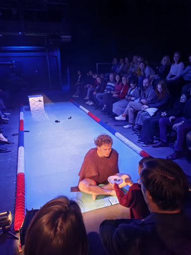 Совсем только что созданный петербургский театр «Пара» представил «заплыв в 60 минут» своего «Паралимпийца» режиссера Романа Габриа. Речь от лица парня, который в результате несчастного случая лишился всех конечностей. Физически совершенный, как античная статуя олимпийца, Виталий Ярош («Лучшая актерская работа») погружает нас в трагедию человека, который внезапно превратился (вспомним Кафку) во что-то совсем для всех окружающих другое, безобразное, про его космическое одиночество, про то, как сверхусилиями своего воображения он пытается спасти себя, очутившегося внезапно в этой пропасти бытия. Надо ли напоминать, как возросла частотность таких «несчастных случаев» для молодых и не очень людей сегодня?
