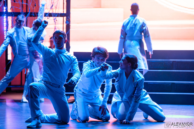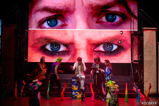 Идея важности человеческого потенциала проявляется в самом подходе к постановке. Декорации и реквизит бюджетные: пара движущихся лестниц, жестяные бочки, мотки проводов; разобранные на части манекены, на которых легко и проявить креативность, и выместить хаос; видеопроекция, чаще всего демонстрирующая крупным планом глаза — зеркало души. Зато не экономили на артистах: половина солистов — звезды, вторая ими станет; живое музыкальное сопровождение; многолюдный ансамбль, который помимо танцев участвует в эффектной сцене боя Криса с защитниками «Структуры». Даже зрители в этом проекте — не анонимные кошельки для оплаты впечатлений: в ходе подготовки премьеры их начали вовлекать в интерактивы на сайте и в соцсетях театра, предлагая выбрать себе фракцию и побороться за нее, выполняя задания, а победителей перечислили в титрах спектакля.