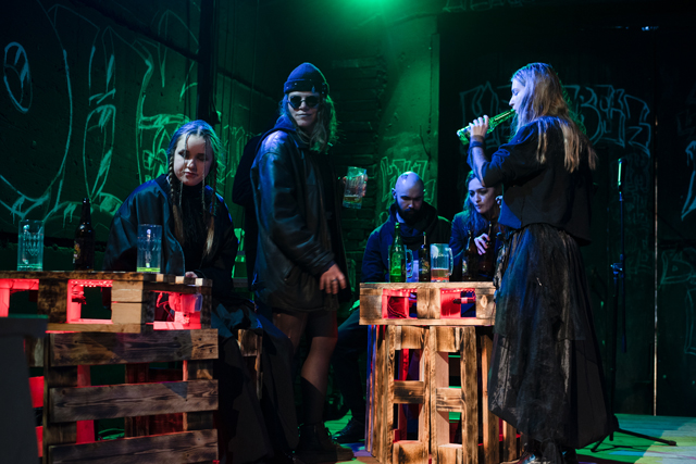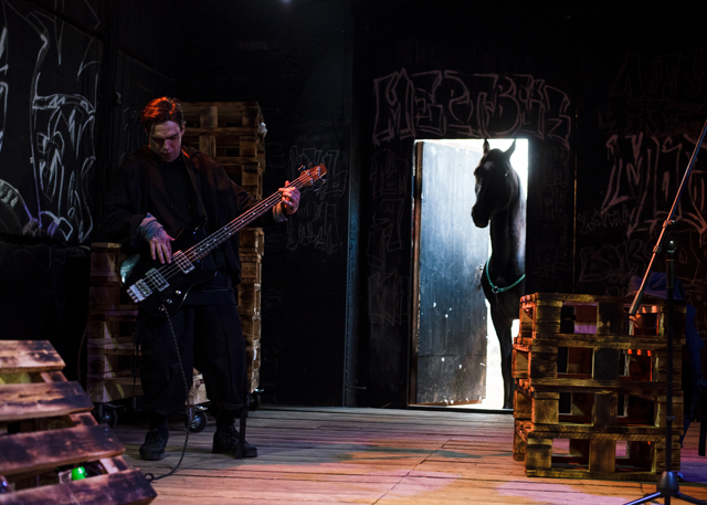 В сарае/стойле/зале «ВелесО» под руководством режиссера Елены Дрюк компания молодых актеров в черном панк-гот-прикиде точно попадает в жанр нуарного хип-хоп поэтического китча. Свидетельствую это со смущением, поскольку я-то точно не адресат этого послания и могу ошибиться в задействованных элементах молодежной культуры. Адрес — сидящие рядом ребята в шапочках, подпевающие песням Егора (Никита Капустин — их автор, он же автор музыки к спектаклю вместе с Николаем Герасимовичем) и знающие что-то, чего не знаю я. Пока мы ждем спектакля, две девочки рядом со мной сыплют названиями клубов с какими-то заходящими или не заходящими вайбами, хихикают неизвестным мне, но хорошо знакомым им «культовым» именам и «гасят» их без всякого хайпа, даже смущенно, но уверенно… При этом та из них, что хочет на днях поехать в Москву (без цели, просто чтобы позавтракать весной на Красной Пресне опять же «для вайба»), упоминает «Благоволительниц» Литтелла, аттестуя подруге книгу как «про фашиста-гея»… Вот для такого молодого племени ритмичный, музыкальный спектакль с незамысловатой, но верной мыслью о спасительности любви и только любви, да еще в рэп-режиме, вполне может стать местом паломничества. Советую любителям субкультурных событий и нелегких трипов иметь в виду Всеволожский район. Как только подсохнут дороги. Потеплеет — и, выйдя после «Ни одного животного», можно погулять на закате среди берез и коней. И даже выпить алкогольного пива, не считая чая в деревянном вигваме при въезде на территорию «ВелесО».